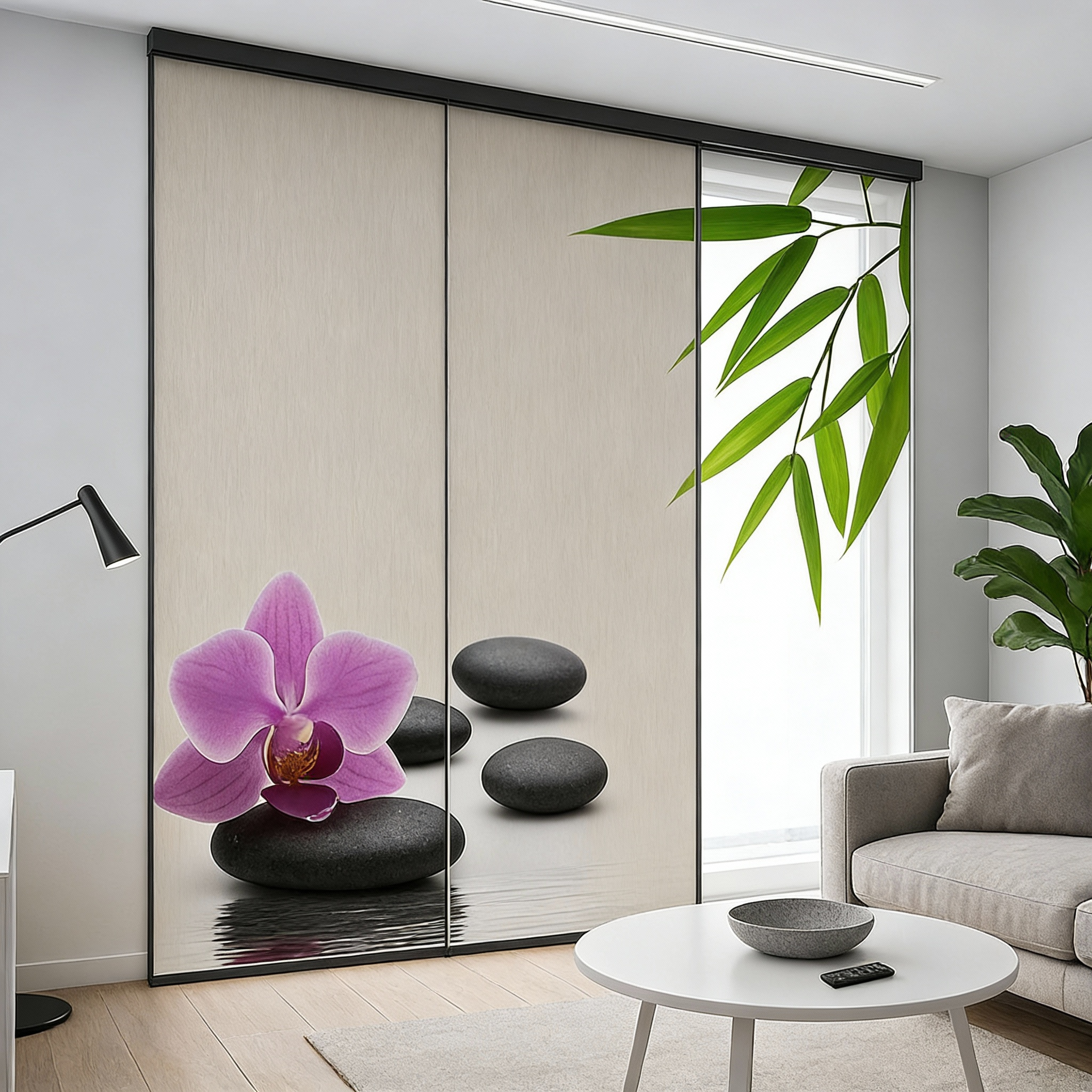 El panel Japonés permite personalizar completamente el diseño de la cortina con imágenes, logotipos o patrones.