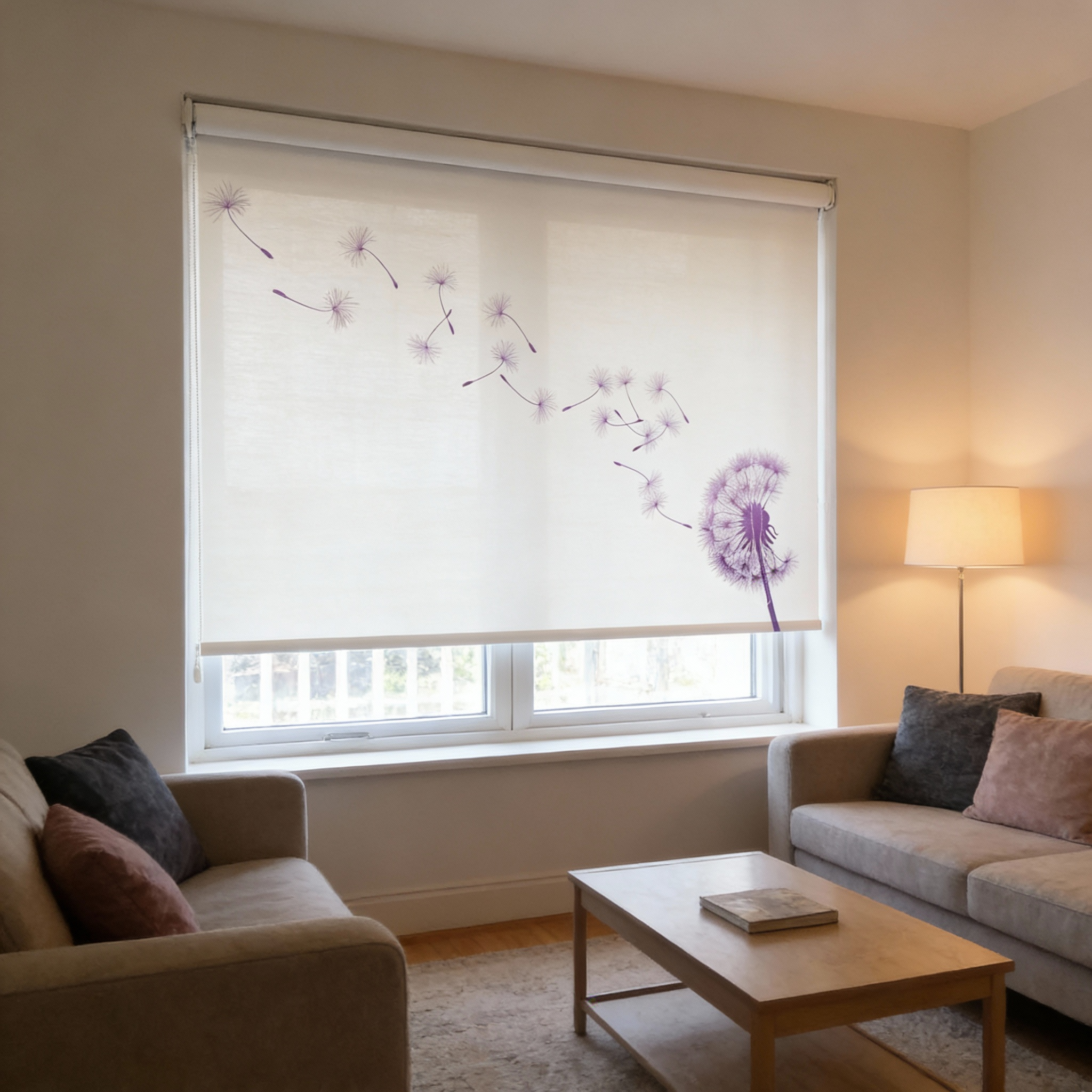 La enrollable perforada con diseño a contraluz permite regular la entrada de luz mientras proyecta patrones decorativos únicos.